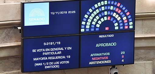 Por su parte, el Senado se reunió luego de que la Asamblea Legislativa proclamara la victoria electoral de la fórmula presidencial conformada por Alberto Fernández y Cristina Fernández. Cerca de las 20.30 se llevó a cabo la votación, que aprobó el proyecto de declaración para repudiar el "golpe de Estado" en Bolivia. El proyecto del peronismo consiguió 29 votos a favor, 9 en contra y 4 abstenciones, sin apoyo del oficialismo.