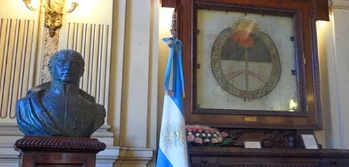 Si ustedes que son jujeños en esa hermosa provincia y van la capital de Jujuy en San Salvador en la plaza donde está el palacio de gobierno, les invito que cuando alguno baje a San Salvador vaya al palacio de gobierno. Hay una sala de las banderas donde Jujuy con mucho esmero guardó por suerte guardó las dos huellas que es lo único que queda de la bandera nacional y del escudo nacional verdadero, dónde está esa borla incaica.