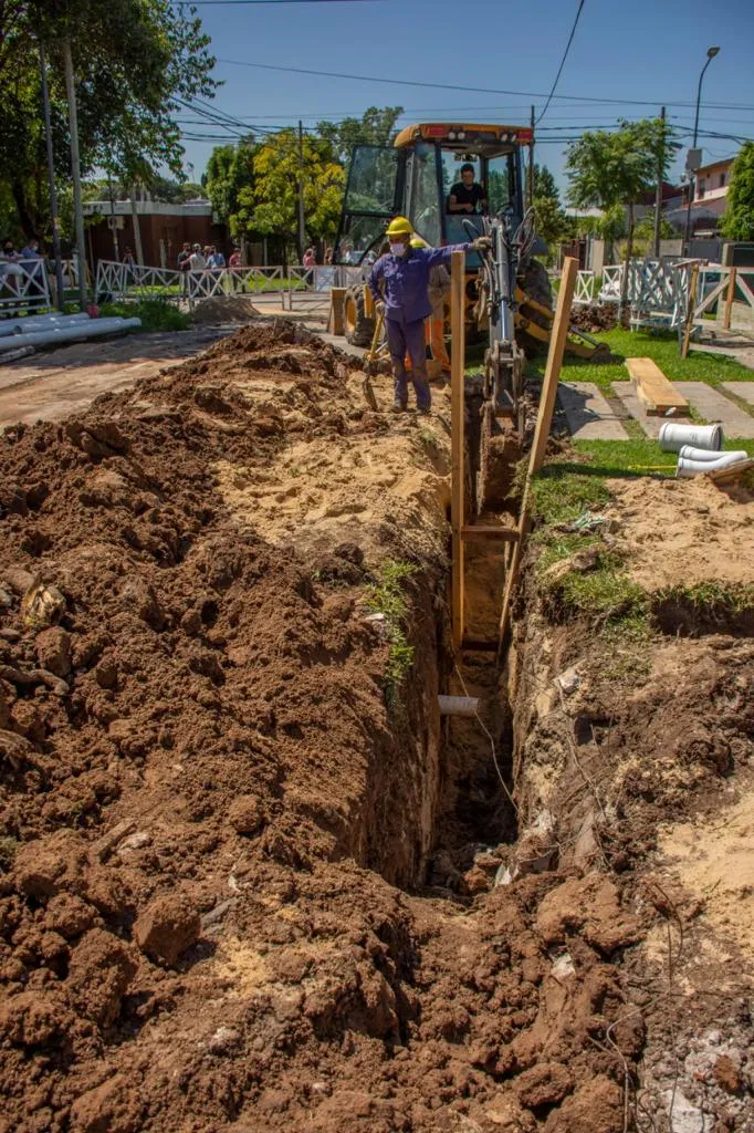 Al llegar al lugar, la mandataria dialogó con los vecinos del barrio acerca de los beneficios que traerá la obra comenzada hace poco tiempo y con los técnicos a cargo de la misma.