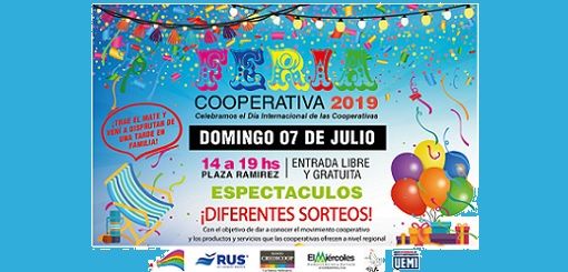 En el marco de la celebración del Día Internacional de las Cooperativas, el domingo 7 de julio, de 14 a 19, en la Plaza Ramírez (sobre la calle San Martín) de Concepción del Uruguay, se llevará a cabo la #FeriaCooperativa. La misma convoca a los cooperativistas de la región a dar a conocer el movimiento cooperativo generador del desarrollo inclusivo y del trabajo digno. De la Feria, que será libre y gratuita, participarán alrededor de 18 cooperativas promocionando servicios de salud, educación y comunicación, productos apícolas, de cósmética natural, prendas y objetos de diseño, diferentes alimentos, artesanías, construcción, entre otros. El evento contará además con espectáculos musicales, entretenimiento para chicos y diferentes sorteos. Organizan Río Uruguay Seguros, El Miércoles Comunicación y Cultura Cooperativa de Trabajo Ltda, la Cooperativa en formación "Artesanos Uruguayenses Entrerrianos (ASUE)", la Unión Entrerriana de Músicos Independientes (UEMI) y el Banco Credicoop.