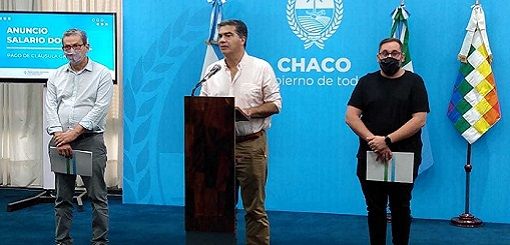 En el marco del pago de la cláusula gatillo, el gobernador Jorge Milton Capitanich anunció esta mañana en conferencia de prensa el incremento salarial docente a partir de enero de 2022. Según afirmó será del 10,2%, cifra que se determinó de acuerdo a la inflación revelada por los datos del INDEC. Por lo que, un docente sin antigüedad, “obtendrá un aumento del 12,3% de bolsillo en enero, y el salario neto ascenderá a $45 mil”, destacó el mandatario provincial.