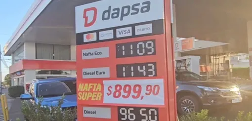 Sorprendió el cartelito con el precio de las naftas SUPER a $899,90, en la esquina de Hipolito Yrigoyen, en la tradicional estación de Servicio "Dapsa La Ege".