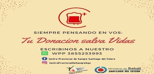 También invitan a los santiagueños que donen plasma, ya que en este último tiempo se vió disminuida la cantidad de voluntarios. Al respecto esto decía la Dra. Maria Elena Sanchez, titular del centro provincial de sangre.