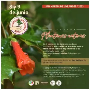 Este jueves 8 y el viernes 9 de junio el Parque Nacional Lanín realizará la entrega de plantines de espcies nativas a cambio de alimentos no perecederos, actividad que se enmarca en los festejos por la “Semana del Ambiente”.