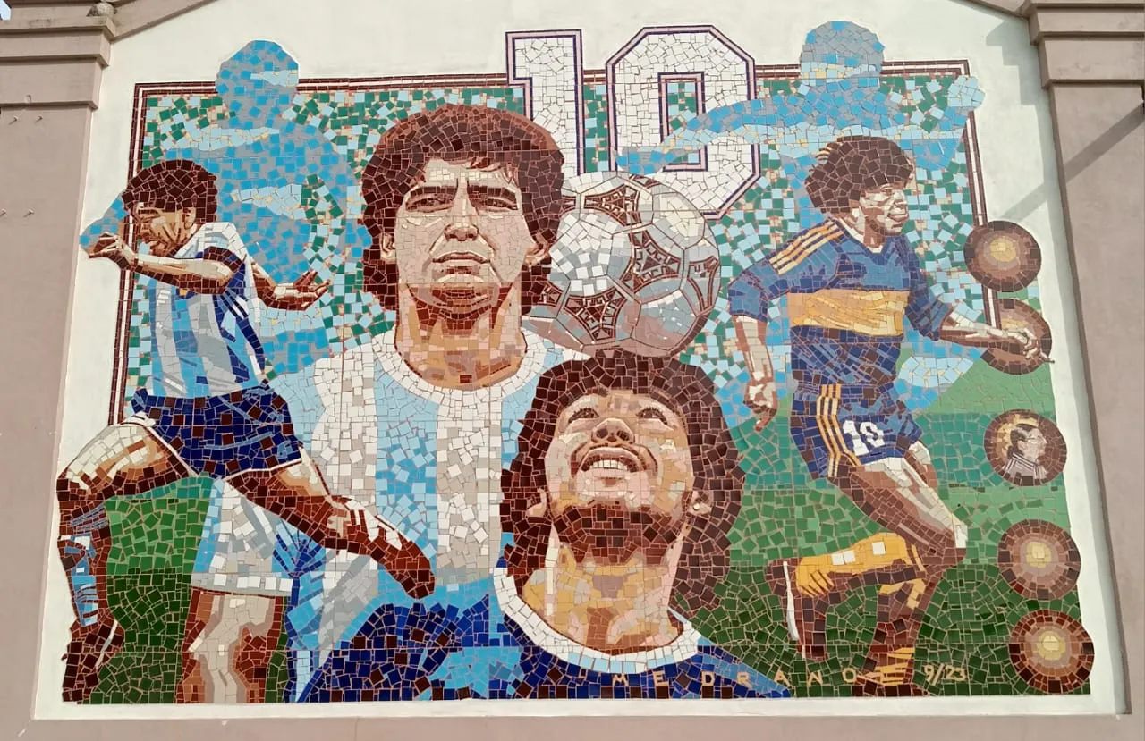 En esta ocasión Néstor inauguró en la ciudad de Hernández, departamento de Nogoyá (Entre Ríos) el mural hasta hoy, más grande del mundo sobre el astro del fútbol. Y nos cuenta que “a partir de la inquietud de un grupo de amigos de Hernández, hace algunos años se les ocurrió hacerle un homenaje a Diego, esa inquietud se la trasladaron al intendente Luis Gaioli, que a través del Municipio se contactó conmigo, y todos juntos terminamos de darle vida a esta idea que desarrollé con la técnica del mosaiquismo con la que trabajo hace más de 10 años” concluye.