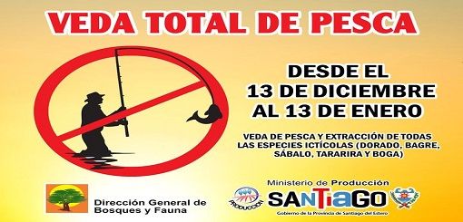 La misma se extenderá desde el 13 de diciembre hasta el 13 de enero y rige para la extracción de todas las especies ictícolas: dorado, bagre, sábalo, tararira y boga. Desde el organismo, dependiente del Ministerio de Producción de la Provincia, instaron a toda la comunidad santiagueña a cumplir y hacer cumplir la medida.