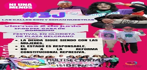 Miriam Morales, referente de la multisectorial de mujeres, indicó que "Mañana viernes vamos a realizar diferentes actividades, una marcha los temas centrales van a ser, los femicidios, la deuda que hay con las mujeres, y sobre todo el rechazo a la reforma parcial de la Constitución, que nos impide movilizar, luchar, porque asi obtuvimos muchas de las conquistas que tuvimos, donde se vio la violencia que sufre la mujer. Somos muchas organizaciones de diferentes colores políticos visibilizando los femicidios, los #NiUnaMenos, como va a ser la movilización de mañana viernes 2 de Junio, desde las 17hs, concentrándonos en Casa de Gobierno".