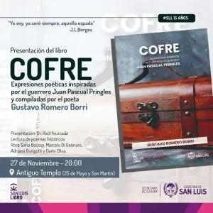 No es casual que la fecha de la presentación del libro, compilado de historia lirica de Juan Pascual Pringles sea el 27 de Noviembre.  Ese día es también un día patriótico. Aniversario de Playa de Pescadores, cuando nuestro Héroe Puntano convierte una derrota en victoria arrojándose al mar.