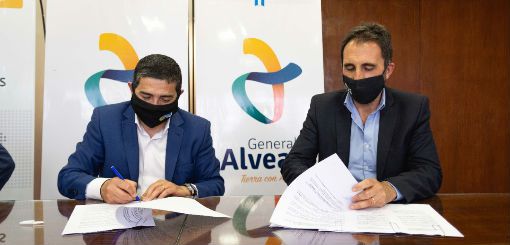 Marcolini firmó un convenio con AySAM para las cloacas en Alvear Oeste