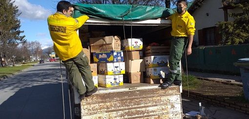Brigadistas reciben donaciones para los vecinos de Cushamen