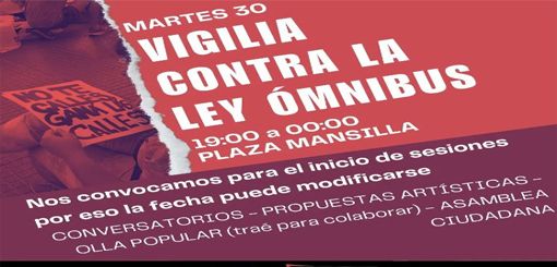 Habrá una vigilia en Paraná contra la Ley Ómnibus