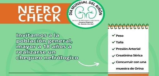 Invitan a la población mayor a 18 años a realizarse un chequeo nefrológico