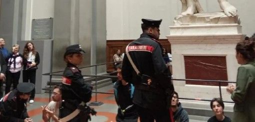 Activistas climáticos se encadenaron frente al David de Miguel Ángel