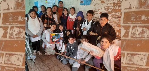 Alumnas de Mollinedo hacen escobas con botellas recicladas