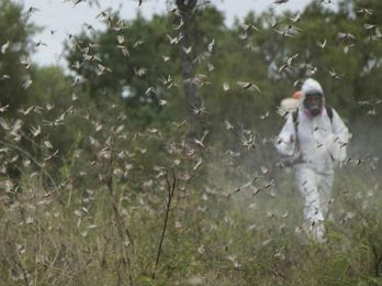 Productores santiagueños preocupados por las mangas de langostas