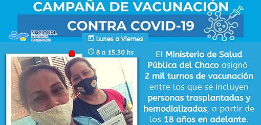El director del CUCAI Chaco, Christian Dellera se refirió en Radio Nacional Resistencia a la vacunación contra el coronavirus de las personas trasplantadas: “desde la aprobación de incluirlas en el calendario informamos de la población tentativa a vacunar y se articuló con la Dirección de Inmunizaciones para hacerlo con quienes residen en Resistencia e interior. Se les dio toda la información necesaria que requerían pues la preocupación era muy fuerte. Lamentablemente hubo fallecimientos pero estamos vacunando a todos quienes optaron por hacerlo”, indicó.