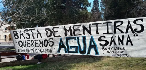 Vecinos autoconvocados en la Asamblea por el Agua Sana, en San Carlos, accionan desde hace 10 años porque el agua que llega a sus viviendas tiene altos contenidos de boro y arsénico y la empresa Aguas del Norte y el Estado no resuelvan el problema.